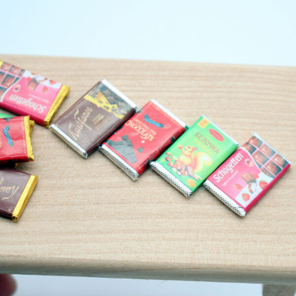 - The chocolate bars can be displayed in dollhouse dessert shops, chocolate shops, or candy stores. They can be placed in display cabinets, on shelves, or on tables.