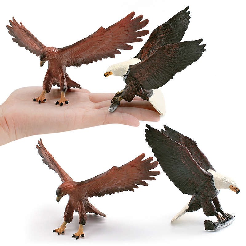 These are PVC realistic miniature sculptures of an African Fish Eagle and a Golden Eagle, meticulously hand-painted to highlight the detailed feather textures, distinctive coloration, and powerful posture of these majestic birds.
