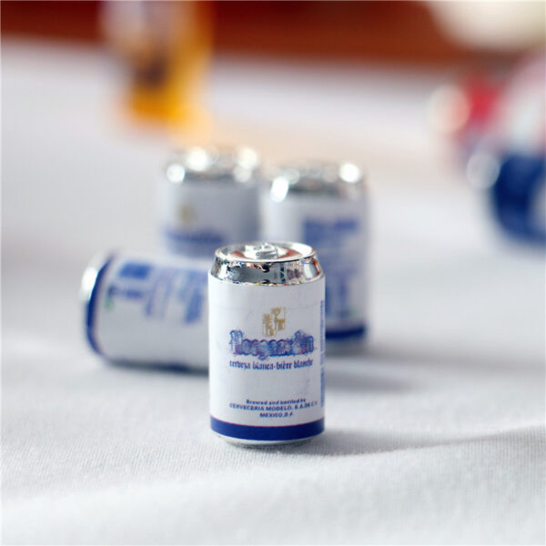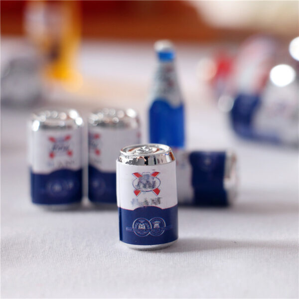 - Miniature beer cans are a common decoration for dollhouse kitchens or dining tables. They can be placed on tables or in refrigerators to create a realistic daily life atmosphere.