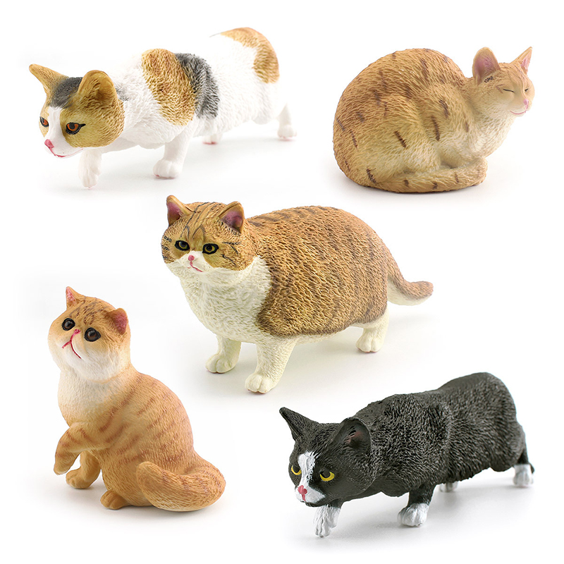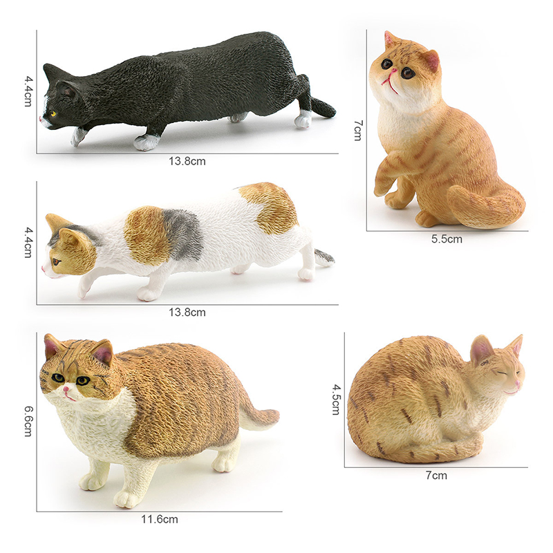 These are PVC realistic miniature sculptures of calico cats and Persian cats, meticulously hand-painted to showcase their unique characteristics and charm.