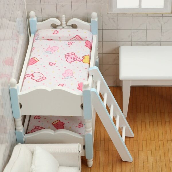 - A small ladder is included for easy access to the top bunk, making it a perfect addition to any dollhouse or miniature collection.