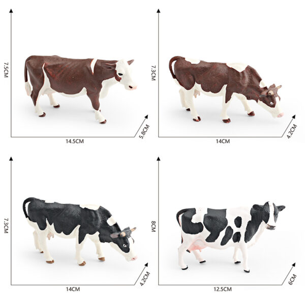 Dimensions | Brown Holstein Cow (5.6" x 1.7" x 2.9"), Black Holstein Cow (5.6" x 1.7" x 2.9"), Cow (5.8" x 2.3" x 3"), Jersey Cow (5" x 2.4" x 3.2") |