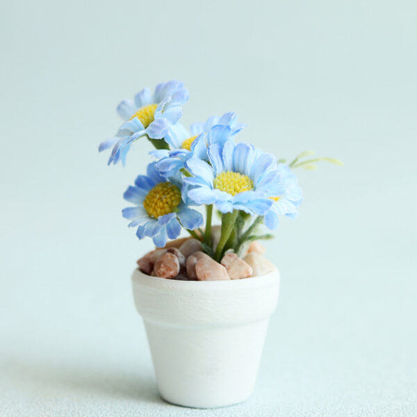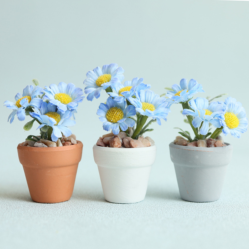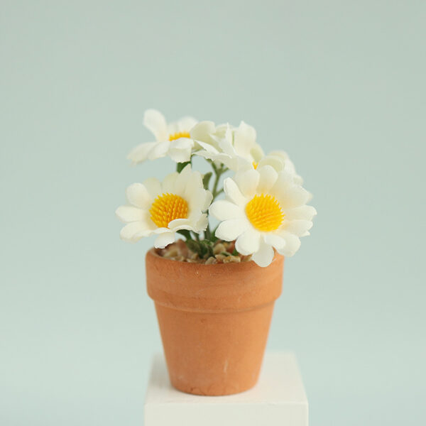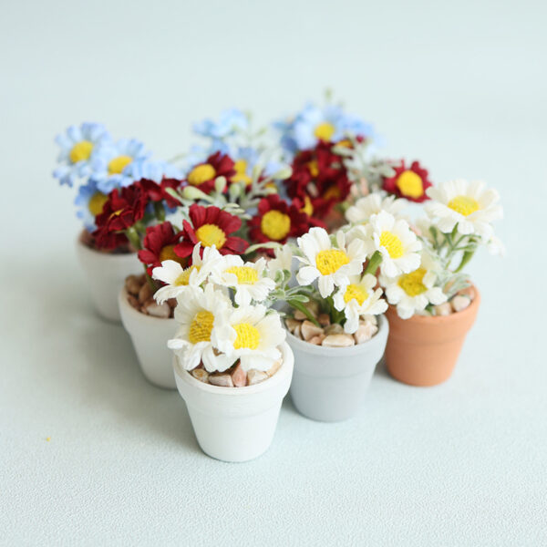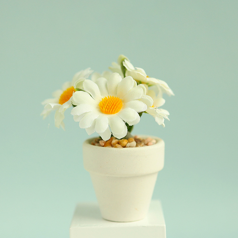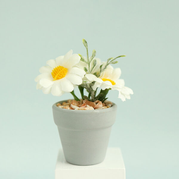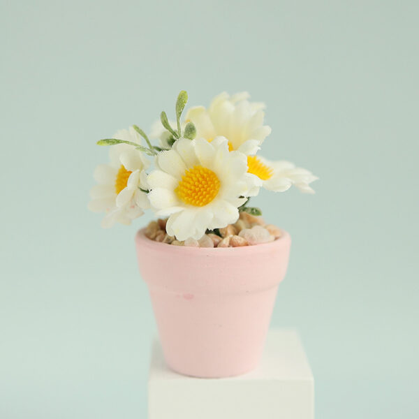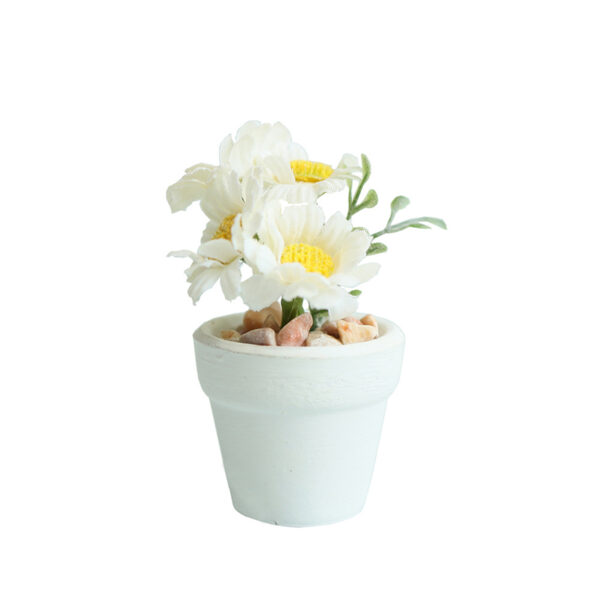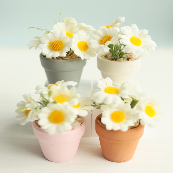 These delicate daisies are carefully crafted from high-quality plastic, designed to mimic the beauty of real flowers. They are elegantly arranged in ceramic pots, filled with decorative pebbles, creating a charming and lifelike display.