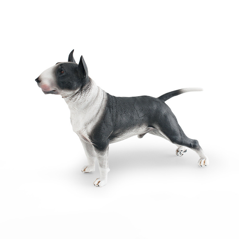 These are PVC realistic miniature sculptures of Dogo Argentino and Bull Terrier dogs, meticulously hand-painted to highlight the distinct features and characteristics of each breed.