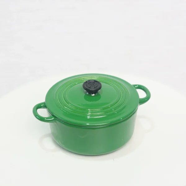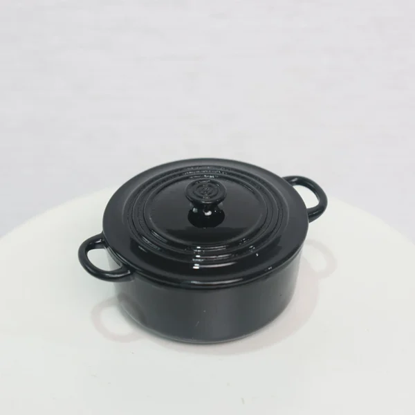 - Miniature round pot body with double-handle design, authentically restoring the shape of an enamel cast iron pot.