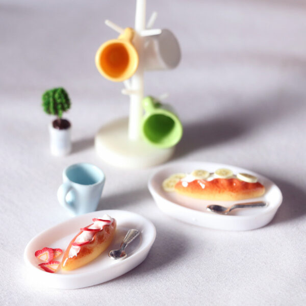 - As part of the miniature food collection, French fruit bread can be paired with other miniatures like coffee, cakes, or cream, enriching the variety of foods in the dollhouse.