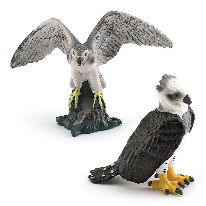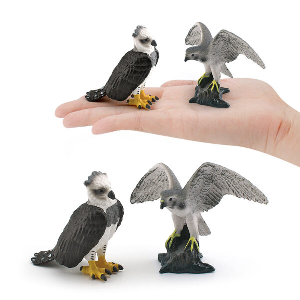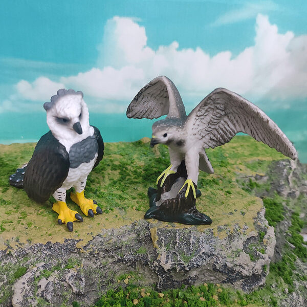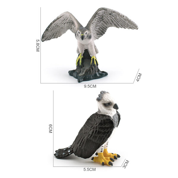 These are PVC realistic miniature sculptures of Goshawk and Harpy Eagle, carefully hand-painted to emphasize the intricate feather patterns and realistic features.
