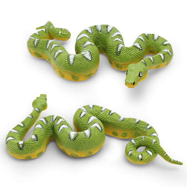 - The dollhouse green tree boa model faithfully reproduces the features of a real green tree boa, including its slender, elongated body and signature bright green scales.