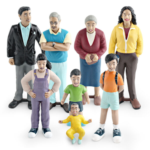 Dimensions | Grandpa (1.8" x 1.1" x 5.6"), Grandma (1.8" x 1.5" x 4.9"), Dad (2.3" x 1.2" x 5.4"), Mom (1.8" x 1" x 5.4"), Elder Sister (1.9" x 0.9" x 3.9"), Elder Brother (1.2" x 1" x 4.2"), Younger Brother (1.2" x 0.56" x 2.3"), Baby (1.5" x 0.6" x 1.9") |