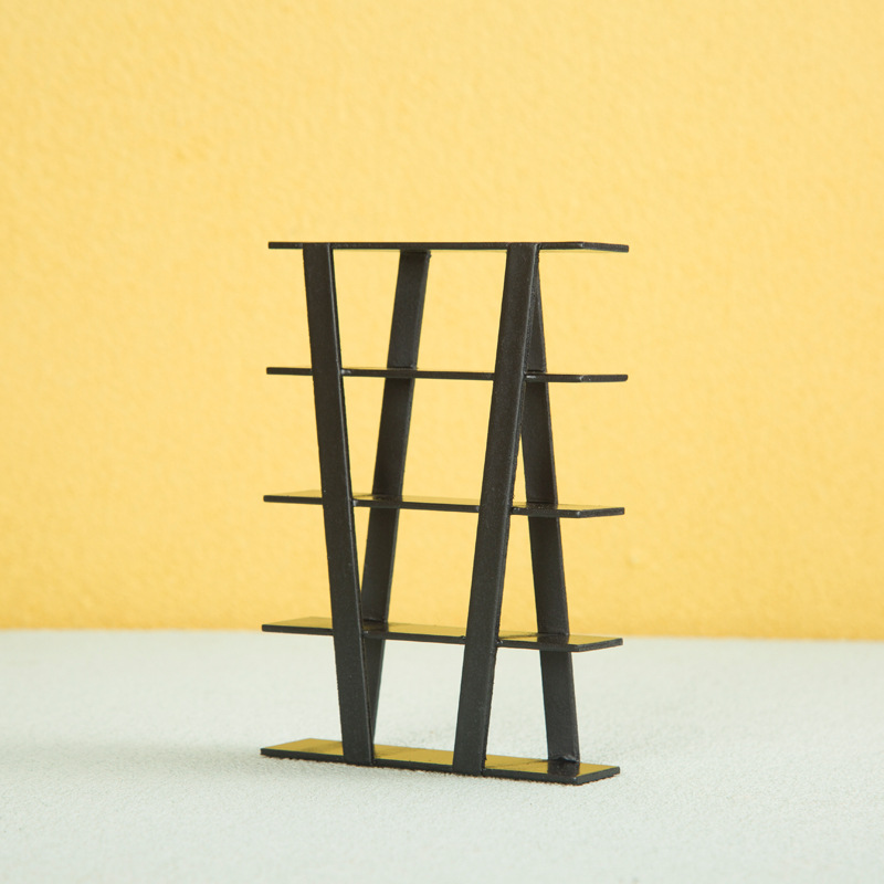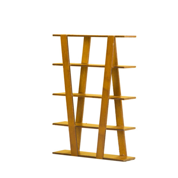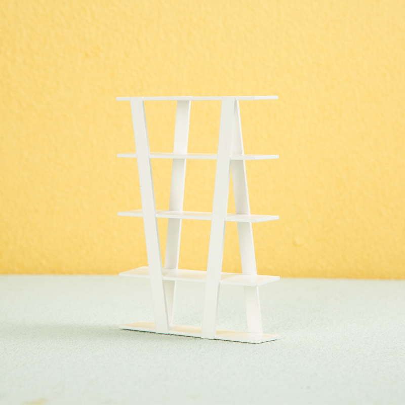 The ladder bookshelf features a modern ladder design, offering multiple display tiers and available in three colors. The stylish miniature ladder bookshelf is a perfect addition to any dollhouse or miniature setting.