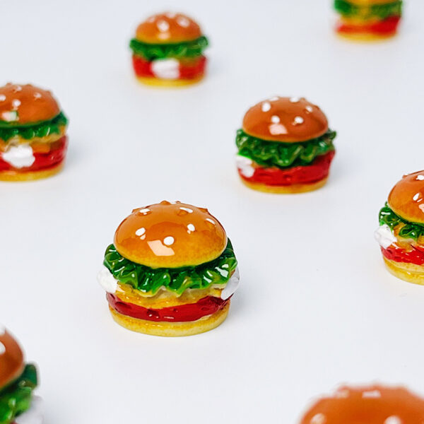 The mini burger miniature, with vibrant colors and intricate details, look very realistic. They are designed for dollhouses, collectible displays, or decorative purposes, adding a fun and playful element to miniature food collections.