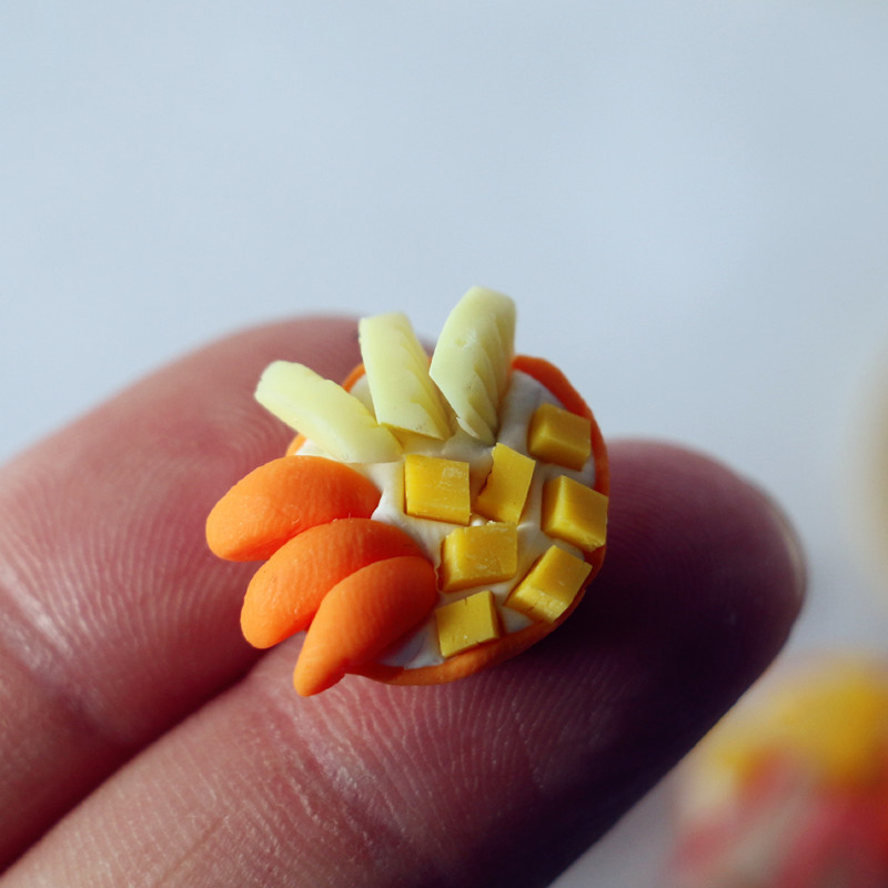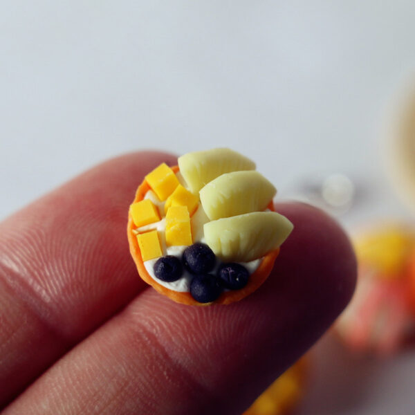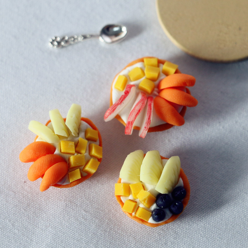 - The dollhouse fruit pie is a delicate miniature food model, highly realistic, brightly colored, and closely mimics the appearance of real fruit pies.