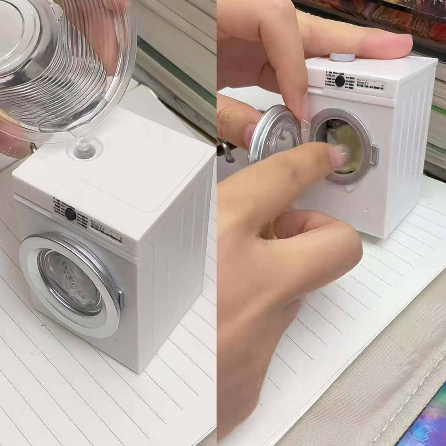 You can pour water into the top, start the machine, and watch it spin! When finished, use the drain outlet to empty the water easily. It’s both fun and educational, providing a relaxing way to relieve stress or teach children how washing machines work.Specifications: