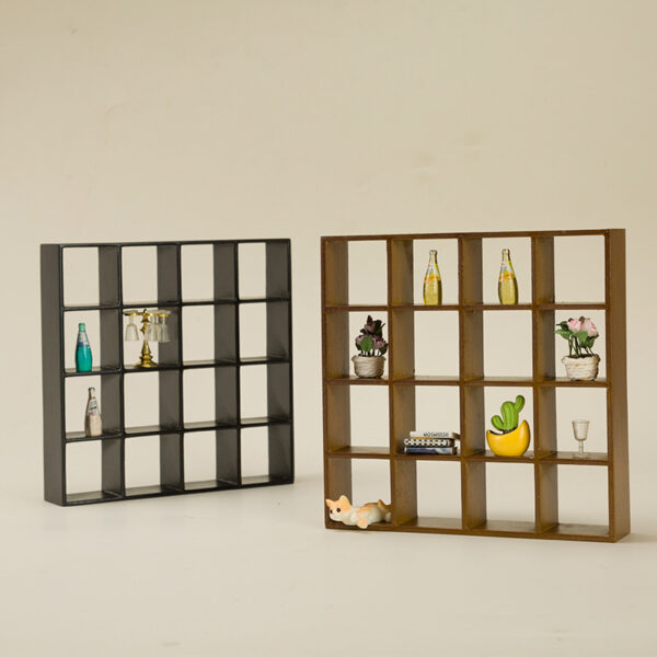 The sixteen-grid display cabinet is a small piece of furniture specially designed for miniature scenes and dollhouse setups, featuring a clever structure and a simple appearance.
