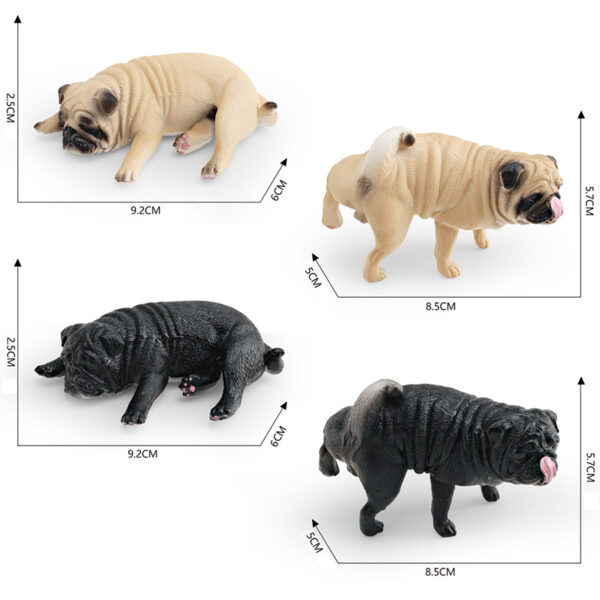 These are PVC realistic miniature Pug sculptures, meticulously hand-painted to showcase the distinctive features and playful nature of the beloved dog breed.