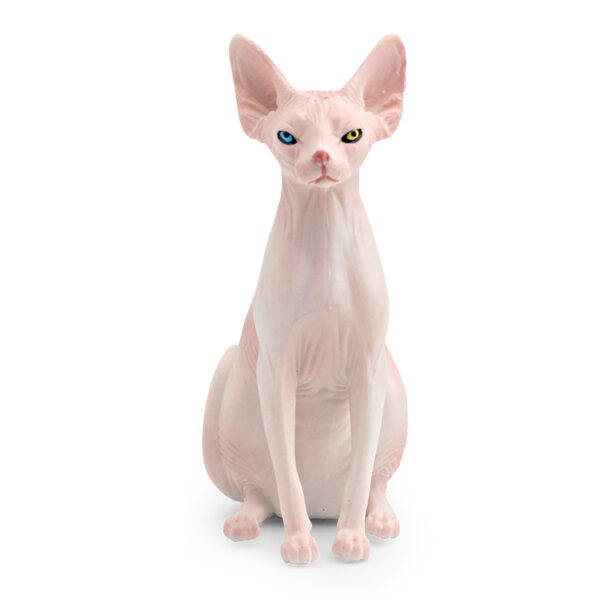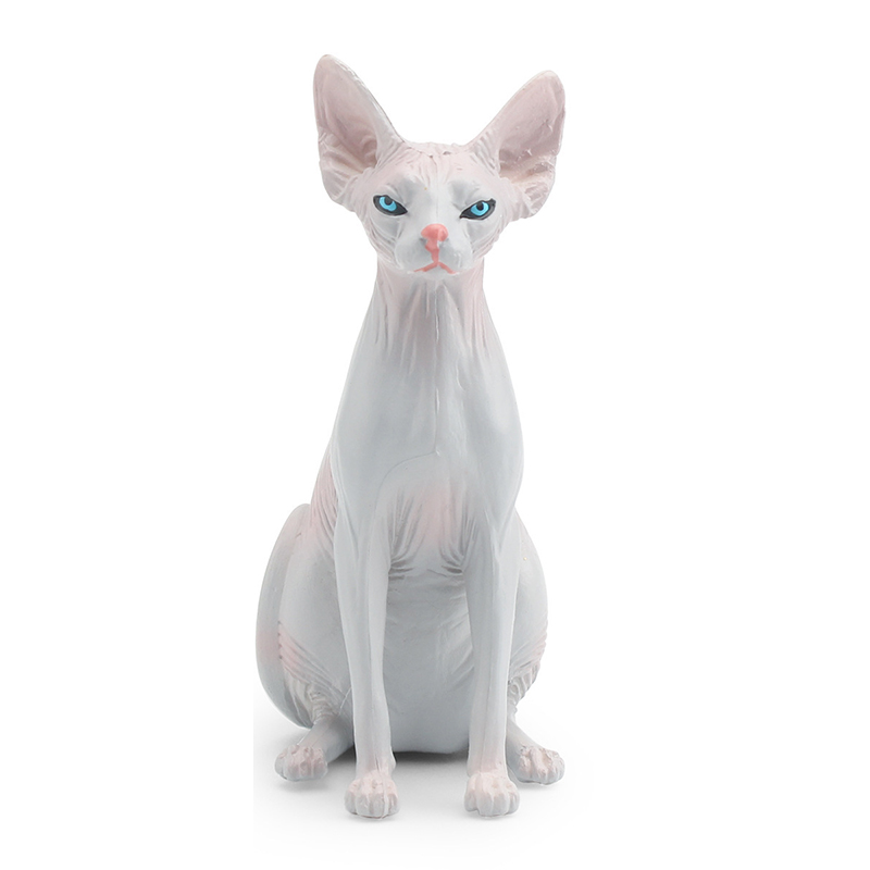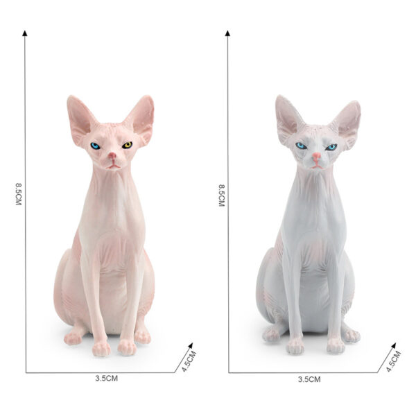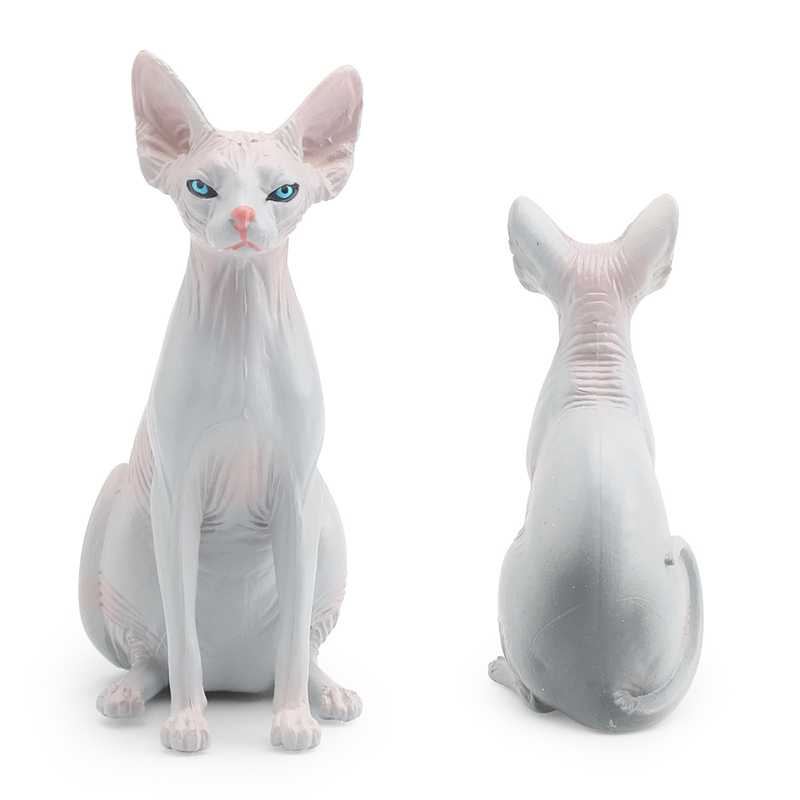 These are PVC realistic miniature Sphynx cat sculptures, carefully hand-painted to depict the unique characteristics of the hairless cat breed.