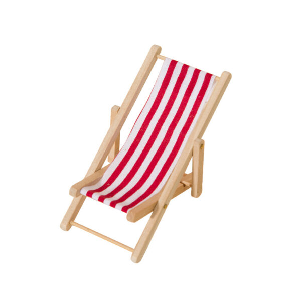 The colorful striped beach lounge chair is a miniature piece of furniture full of summer vibes. With its exquisite design and vibrant colors, it adds a relaxed and pleasant vacation atmosphere to dollhouse scenes.