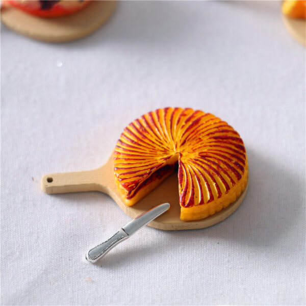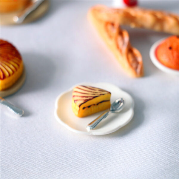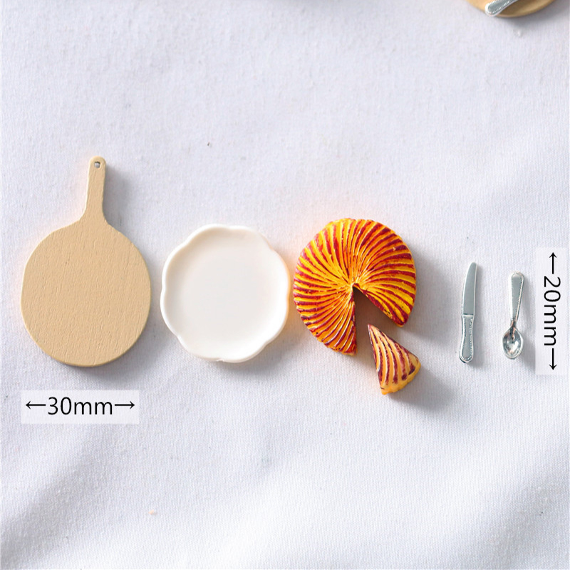 - In a dollhouse,the striped cake set helps recreate everyday cake-cutting scenes, whether it’s a birthday party, festive gathering, or family dinner. The carefully designed cake on the tray, paired with the knife, helps create a refined and vibrant atmosphere.