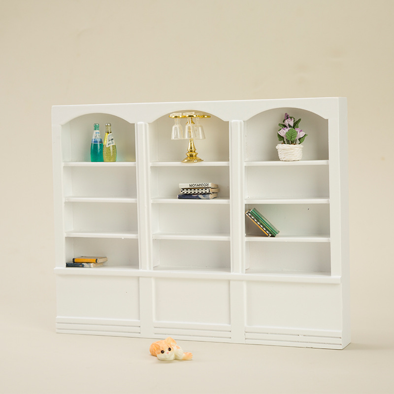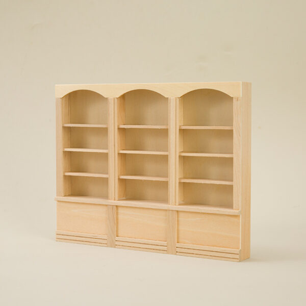 The three-unit bookcase is a classic piece of miniature furniture designed specifically for 1:12 scale dollhouses, combining elegant design with intricate details.