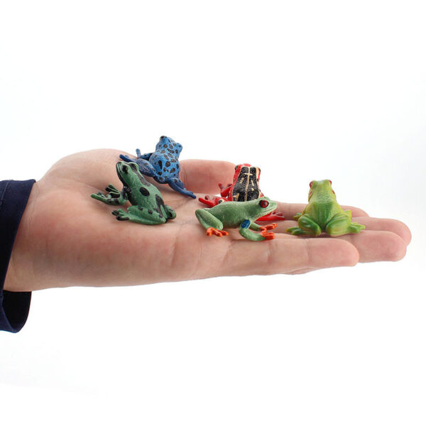 These are PVC miniature sculptures representing various species of frogs, hand-painted with attention to detail. These figures showcase a variety of poses and realistic colors, bringing each frog’s unique characteristics to life.