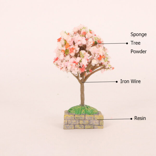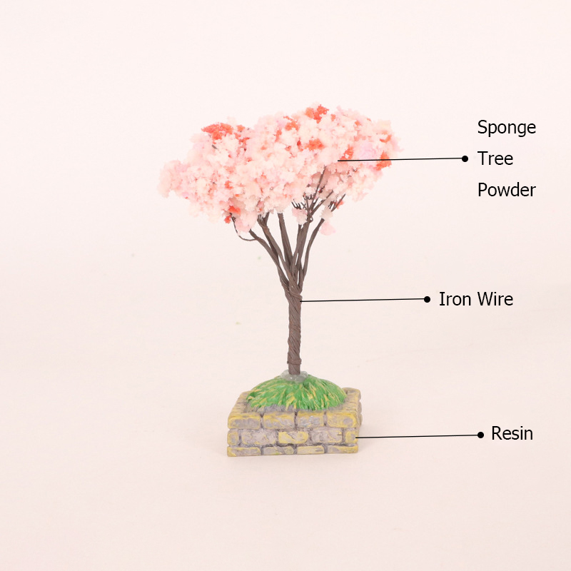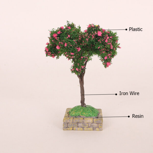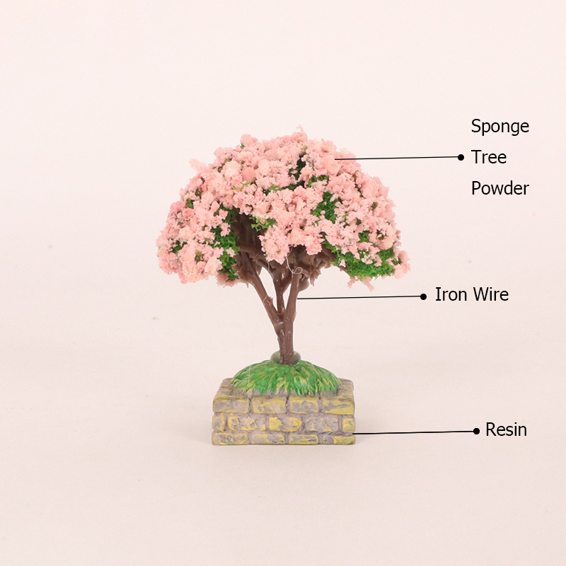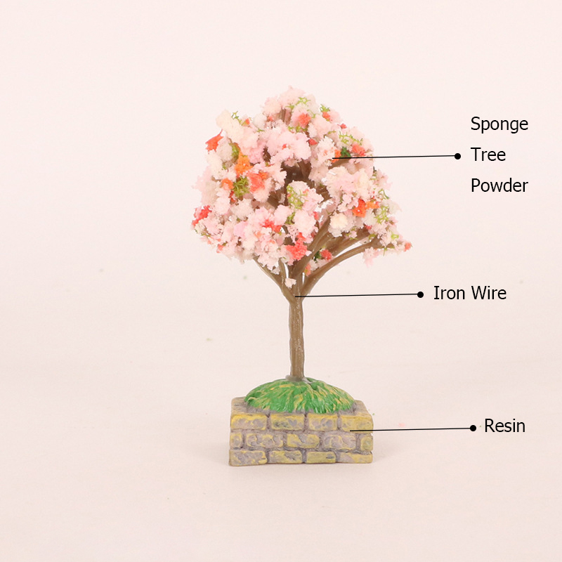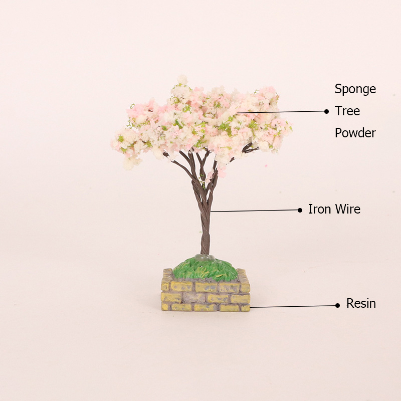 The miniature tree is a model decoration scaled down according to real trees. It features a realistic appearance, with detailed branches, leaves, flowers, and a base, adding a touch of nature and vitality to miniature scenes.