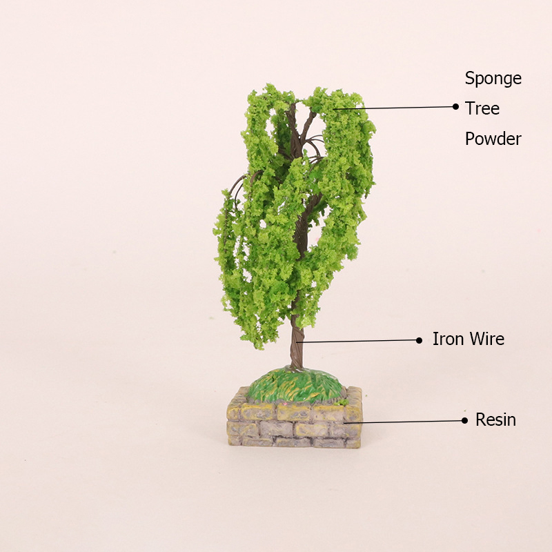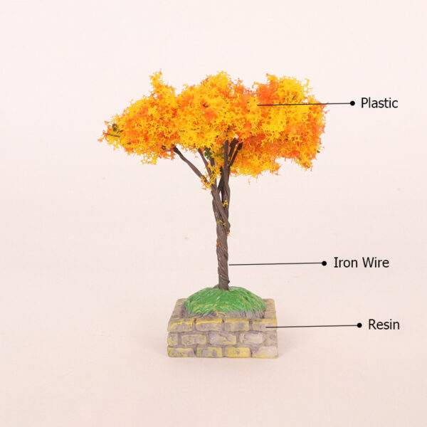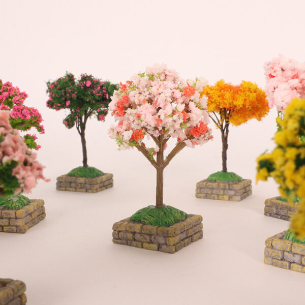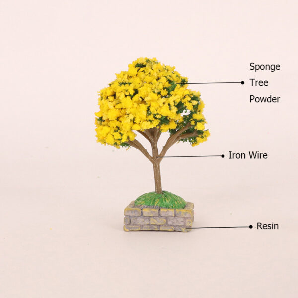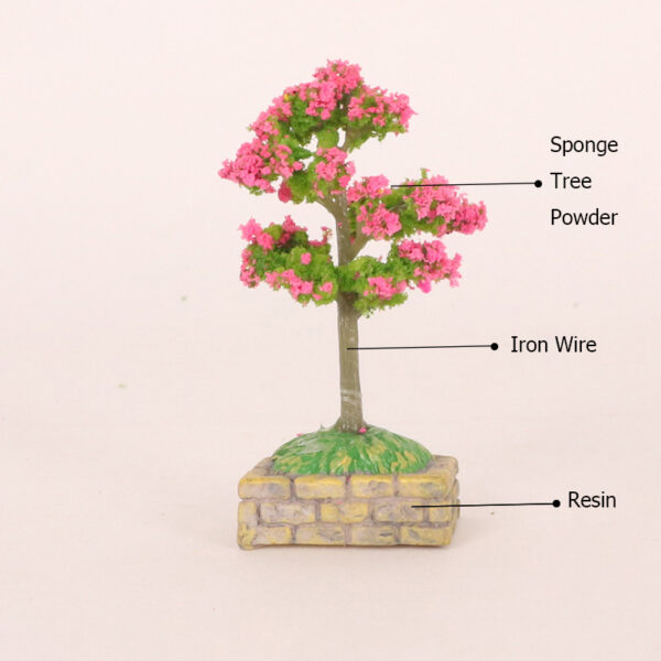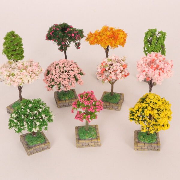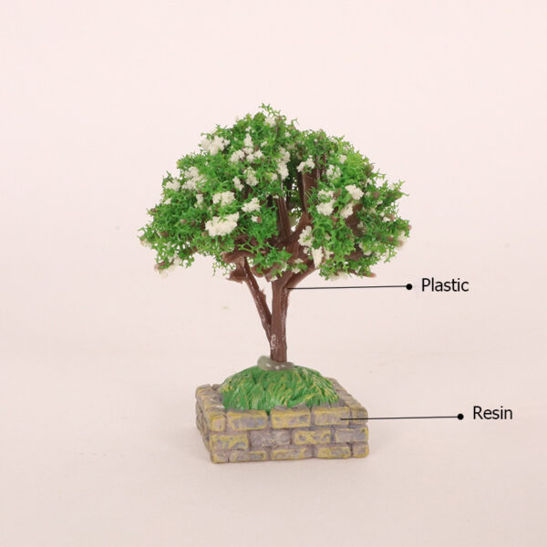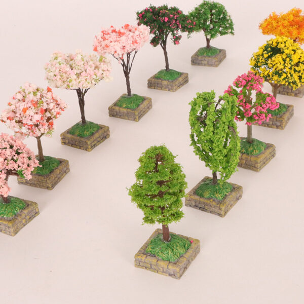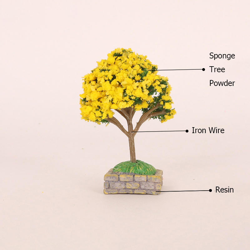 The miniature tree is a model decoration scaled down according to real trees. It features a realistic appearance, with detailed branches, leaves, flowers, and a base, adding a touch of nature and vitality to miniature scenes.