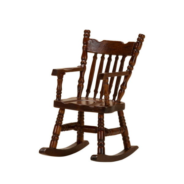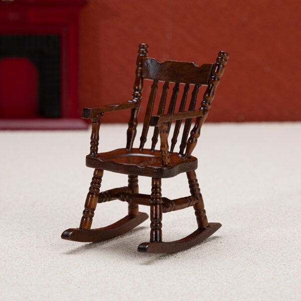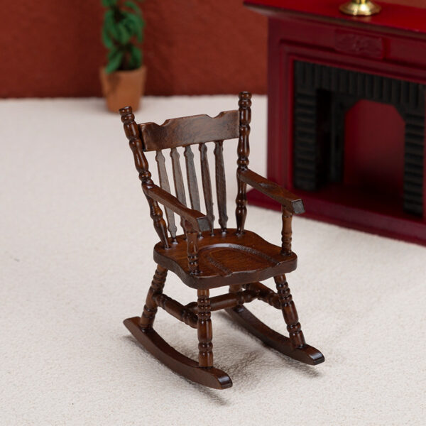 Designed with a classic slatted backrest, armrests, and curved rockers, it adds a charming and nostalgic touch to any miniature living room or porch setting.