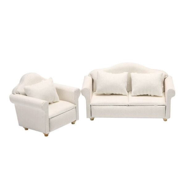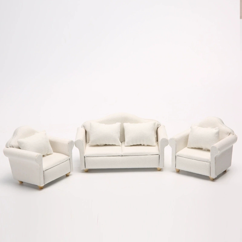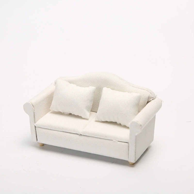 The white fabric sofa, with a simple and elegant design and a pure color tone, is an ideal choice for furnishing modern or minimalist-style dollhouse living rooms.