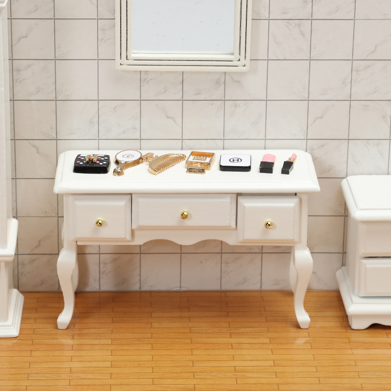 - Both tables are crafted with delicate curves, gold-tone drawer handles, and functional drawers for added authenticity.