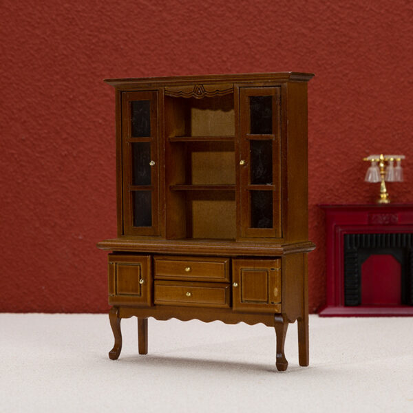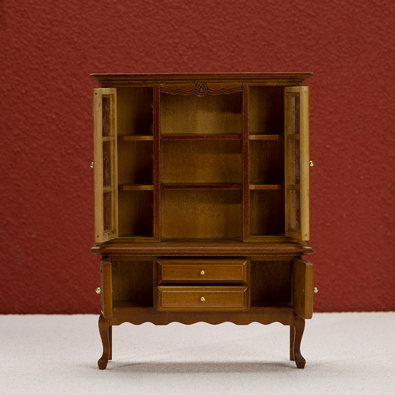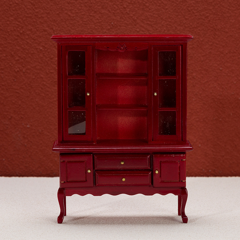 The wooden sideboard is a classic piece of miniature furniture that combines an elegant appearance with practical functionality, making it an ideal choice for decorating the dining room or living room of a dollhouse.