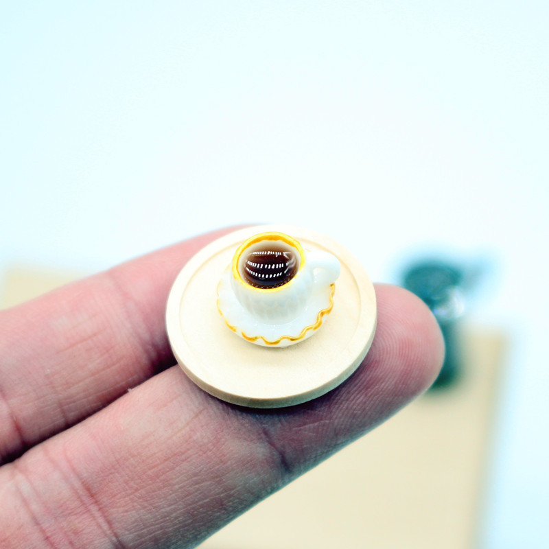 The coffee cup and the wooden tray are small-scale models designed specifically for dollhouses and miniature scenes. They are commonly used to decorate the dollhouse’s dining table, kitchen, tea room, or café areas, adding a sense of detail and life to the scene.