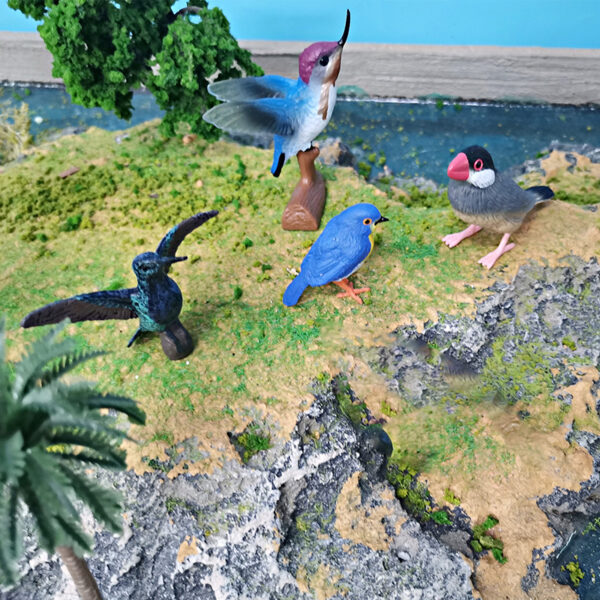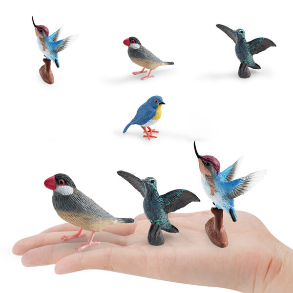These are PVC realistic miniature sculptures of the Java Sparrow, Hummingbird, and Robin, meticulously hand-painted to highlight their natural colors and intricate feather details.